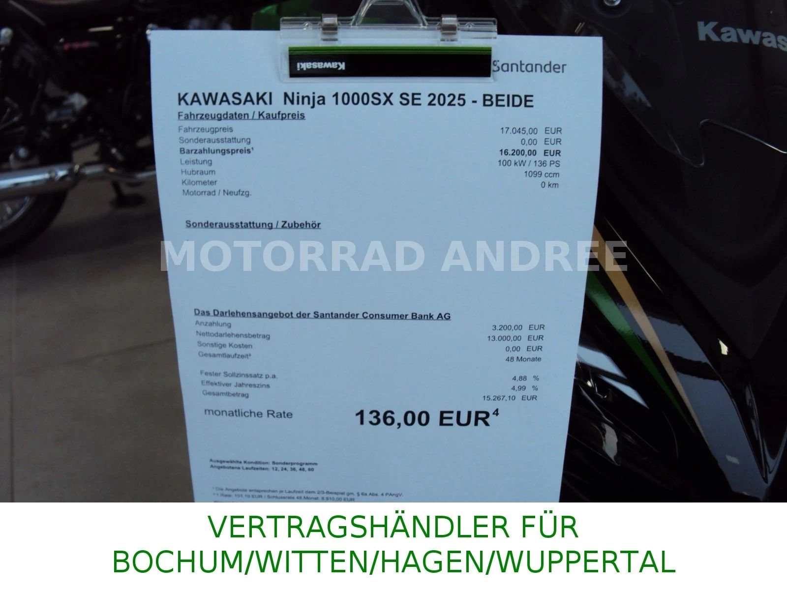 Die neue Ninja 1100SX bietet das ultimative Sporttouring-Talent. Die Ninja 1100SX wurde für hohe Leistung, fortschrittliche Technologie und hervorragenden Komfort für sportliches Fahren und Ganztagestouren entwickelt und setzt einen neuen Standard für Sporttouring-Leistung. Jetzt auch als besonders veredelte SE-Version erhältlich.€16.645,00ab Werk (GN1)€17.045,00inkl. Überführung