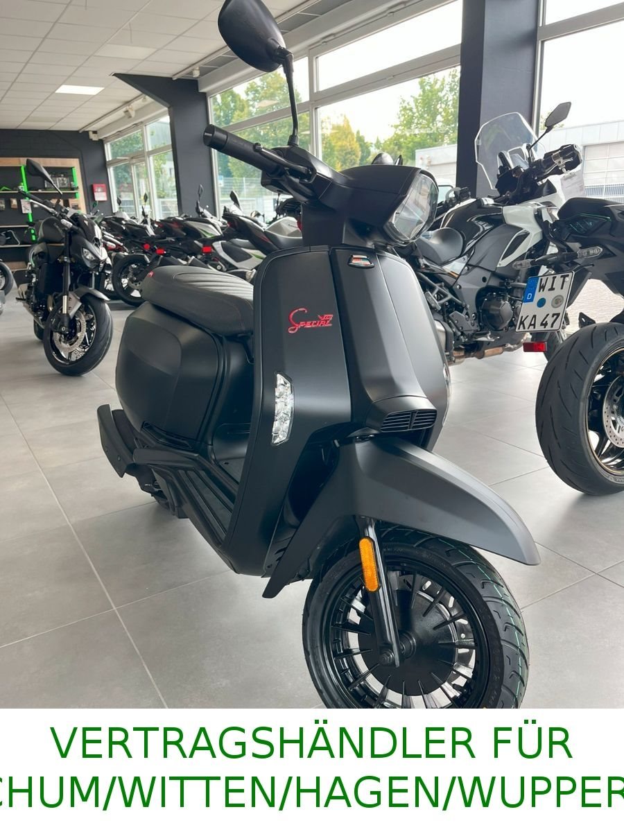 Die neue Lambretta V-Special 50 reiht sich mit einem jungen und lässigen Stil in das aktuelle Angebot an Stadtrollern ein.